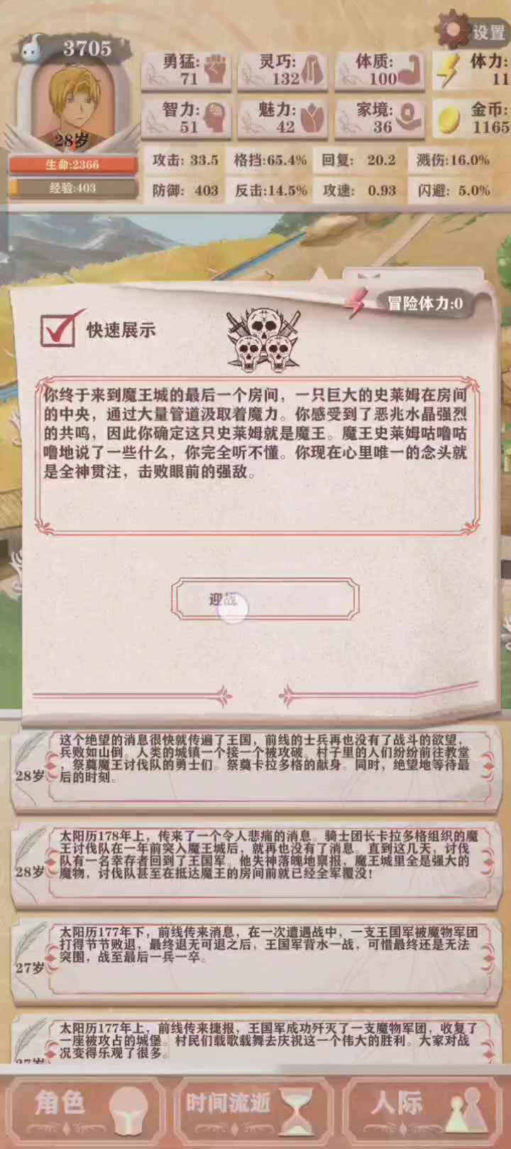 盾勇➕钓鱼➕任意,钓鱼真是神技,前期跟父亲解开农田,开始把看书的体力分一部分过去钓鱼,10岁稳稳1000块去买马(后面攒两年钱买表,有了露娜买帐篷)20体刷副本打神器(我基本都是20体刷,省下来体力锻炼) 这把10岁到15岁就是地狱难度,因为盾勇打不动怪,到了boss前一天还是一个神器没打出来,也没刷出来,盾勇30防御反伤五点伤害,什么装备都没有,前一天副本狂开七八次,终于宝箱有一个三级甲,果断拿