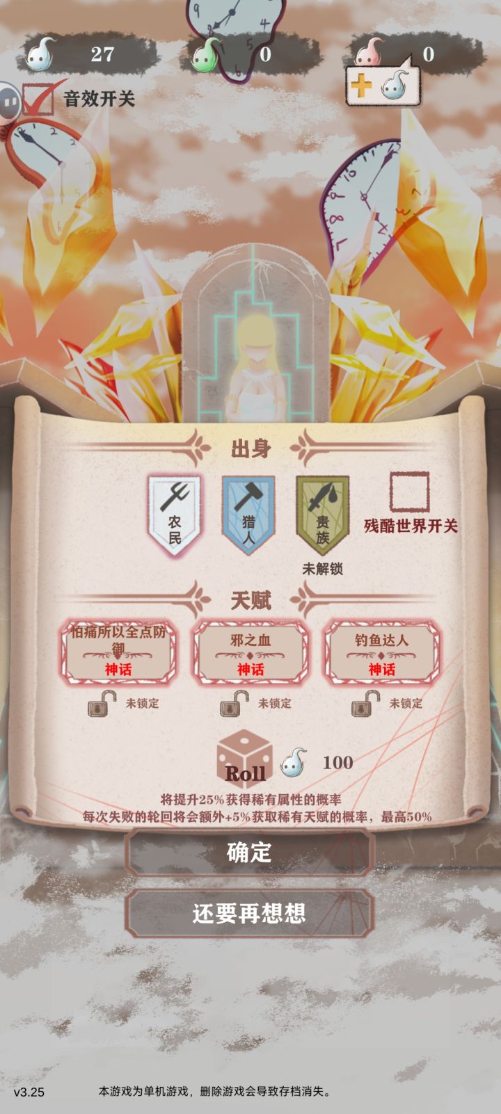 当时忘截图了,就是猎人线1岁时猛猛睡是不是会梦见上一世。昨天打完农民残6开了把高光环猎人,开局九连睡出发现的。一共四段,第一段说梦到一个莫名熟悉村庄+1智,第二段说到村庄里走+1智,第三段说在梦境里穿透了一个村民的身体发现自己是个灵体+1智,最后一段说梦见一个少女出来对我说话,但无法听见说的内容+4智。今天打猎人线刷不出来,我猜和上一次游戏玩的那条线有关兄弟们,谁来验证一下?#异世轮
