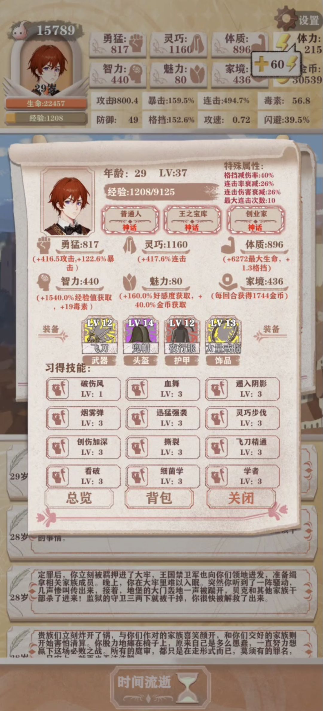 带的失眠患者和两个加毒素的红天赋,贵族还真是简单 没有买一块田地 前几个恶兆也没跑商 直接从家里用完体力就去买涨价的然后就下本 结果通关了