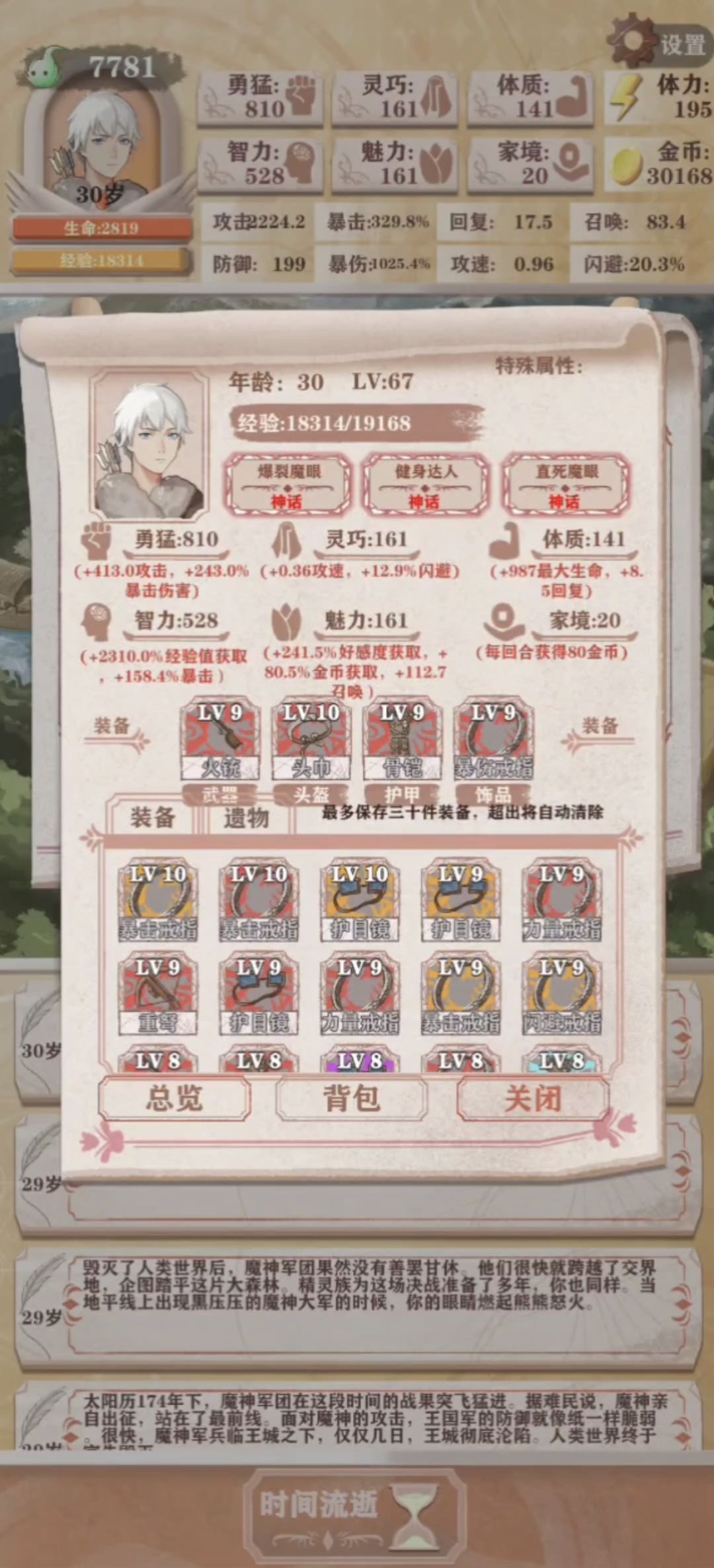 每回合摸树,主魅力7岁加智力到54弄个召唤技能,100敏捷后加体质,打完山丘之后随意,没拿到帽子恶兆全部涨,双龙打不过。