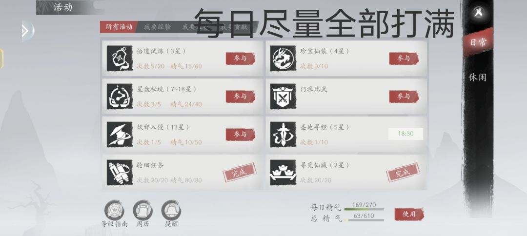 游戏等级升级攻略; 前期基本经验都是通过主线获取,当你等级达到43-42级的时候, 你可以通过活动进行升级(建议先悟道-轮回-星盘)。 当然切记8倍经验丹等,这些是会过期的,经量直接使用。 悟道每天可以打20次 轮回是单人任务一天10次 星盘每天10次(星盘是装备获得的主要途径) 建议先加宗门,生活技能需要宗门才能进行升级。生活技能页面底下有个叫命理的技能点,点上之后能加28的幸运(有好过无); 加
