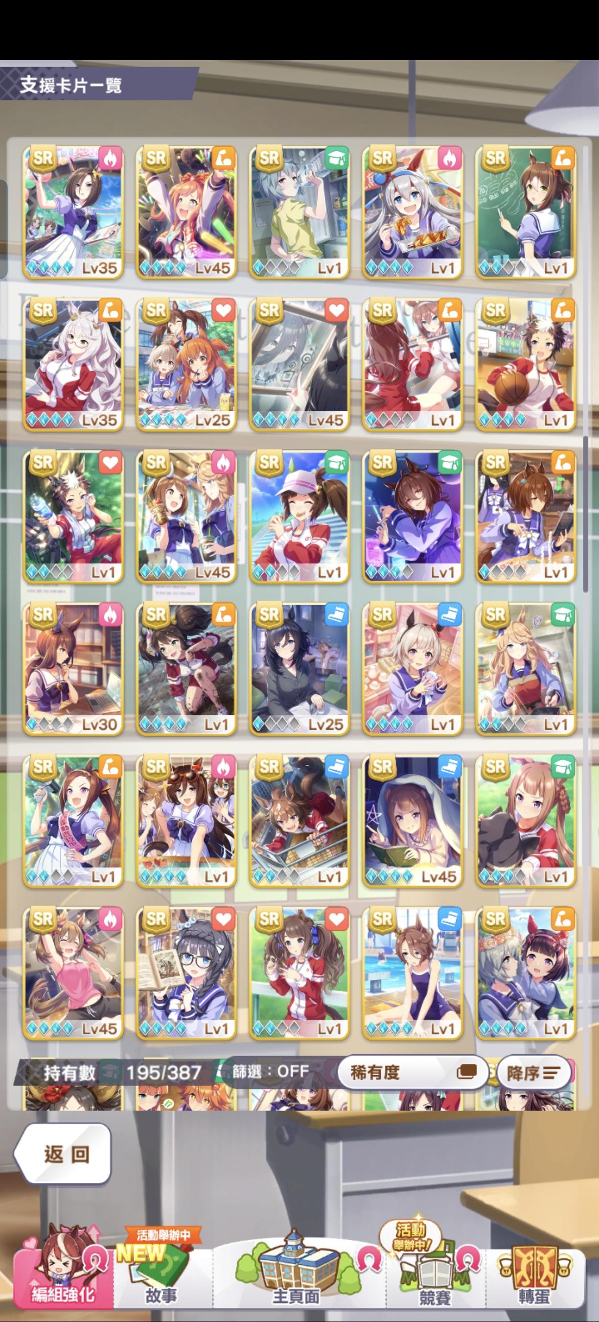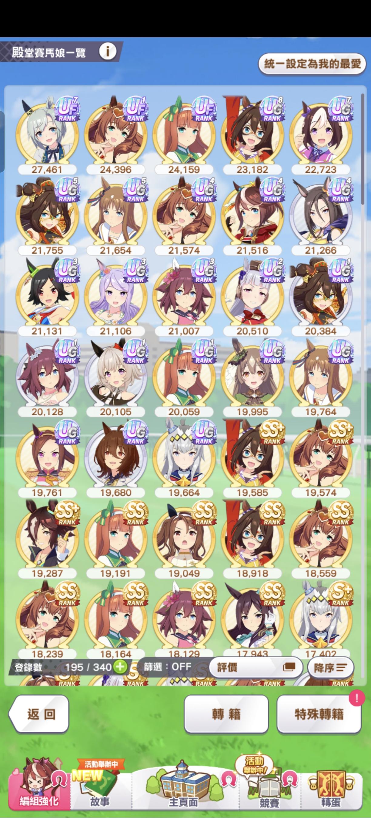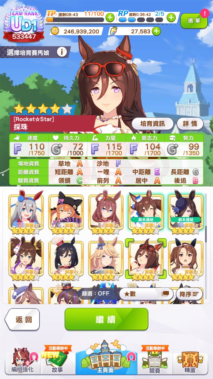 时隔多日,在经历了一次又一次的训练后,我终于养出了5只UG马娘,可喜可贺,在论坛上庆祝一下另外,有没有大佬可以教我一下,里见皇冠怎么养,我养她的次数最多,结果就是上不了UG,甚至都快掉出前10名了