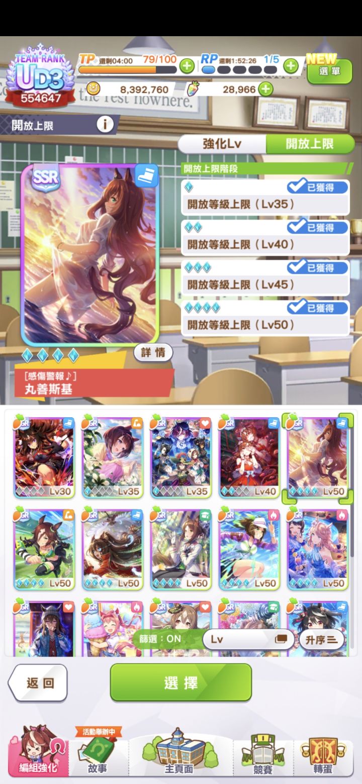 当SSR仅有一破或者零破的时候,那么一般的配卡就不带SSR了,选择高破或者满破的SR配卡。本人学艺不精,此前被封了一个配置比较好的号,所以开新号感受了一下。就简单分享一下如何用5SR练出一个数值还过得去的马。1.剧本选择中长距离可以尝试一下青春杯,比较自信的可以全距离都用青春杯。青春杯给的数值更多,训练比ura比较赚。当然ura还是可以玩的。2.配卡思路配卡就拿小栗帽距离。比如我想让小栗帽