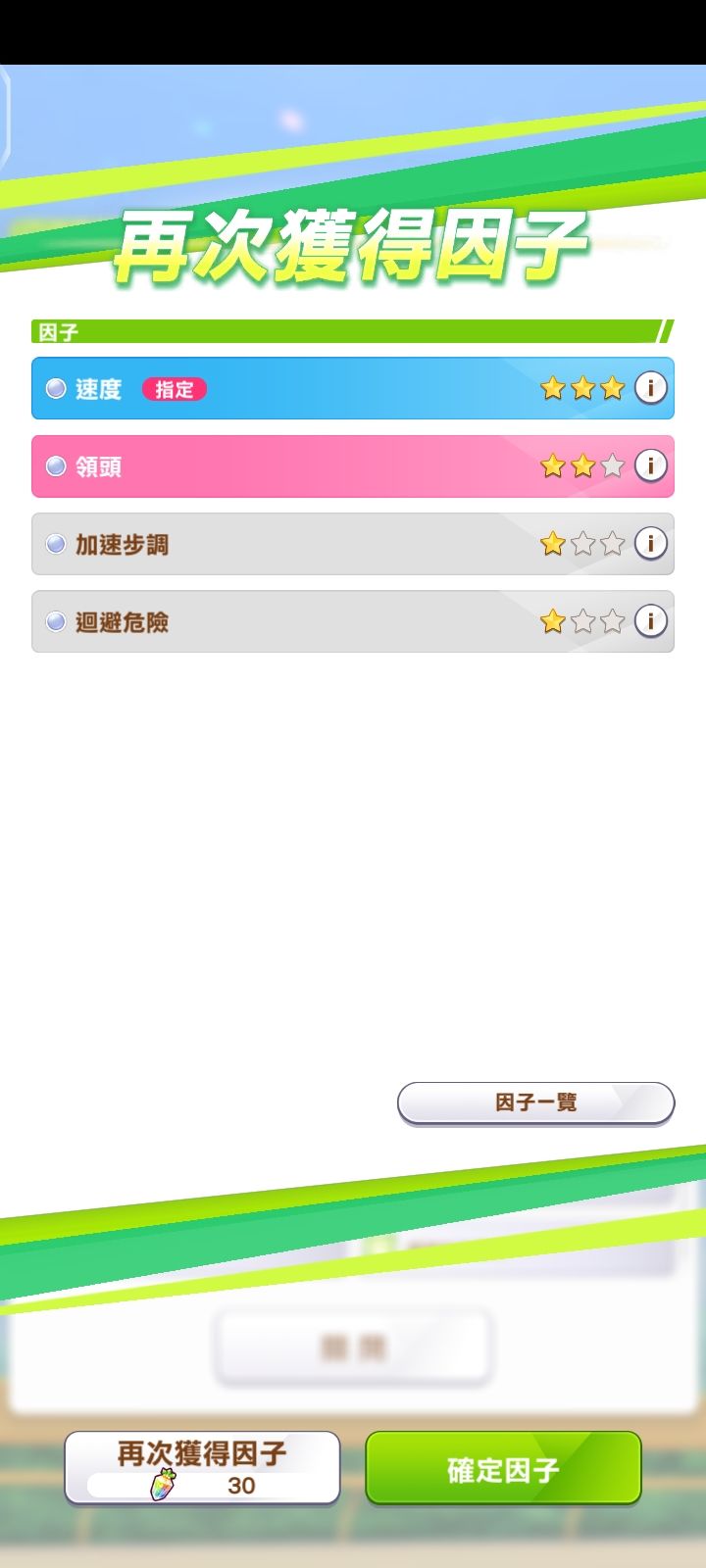 偶尔逛了逛 发现这里虽然很冷但是萌新还是挺多的 所以稍微写下入坑建议首先 不要着急买初始号 一定要先体验下游戏机制再决定是否入坑 养一匹马正常耗时在40分钟左右 同时出货率即养成三星蓝因子种马的概率为6% 而只有一匹九蓝因子的种马才能作为大赛马的父辈 这里面花费的时间可以自行计算 并且赛马娘养马过程重复程度相当高 剧情完全一样 因此赛马娘也经常被称为坐牢游戏关于日服台服国服的选择日服:优