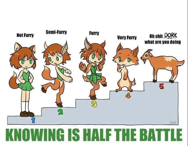无疑,从游戏宣传就可以看出,浣熊一直在宣传的最大特点就是游戏中的Furry(福.瑞)角色形象,在此之前,大众主流认知和网络主流观点上,Furry并不是一个褒义标签,它所承载的对于“毛茸茸,动物形态,拟人化虚拟动物角色”的爱好经常会被曲解为“心理问题”和“认知差错”(已经很委婉了,图二是所谓Furry进阶图)。