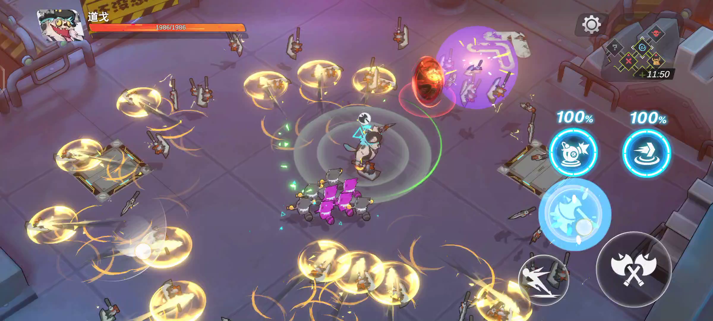 普攻挡子弹手套+接斧子旋转(可触发普攻特效,额外斧子+挡子弹)狗叫声容易上头!!!