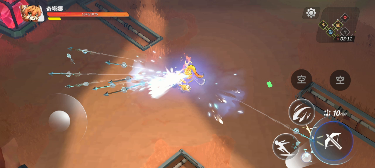 本来还以为不能卡其他角色会丧失些乐趣,没想到又出了新的更有趣的bug。 刚刚打了一局,突然发现选了新的武器之后旧的武器依然生效。这是什么概念?蓄力速射加上三连发,快上加快,冲刺后有强化万箭齐发,还有技能双发。只能说是前所未有的乐趣。 技能连发是后面拿的,没录上。反正这套下来最后哪了好几个武器,打boss的时候一个蓄力连射就过了。