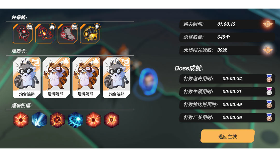 没通关的可以参考下,相关的祝福主要是暴击,长按普攻连击必选(主要是按着轻松)护盾有没有无所谓,浣熊个人喜欢炮台,配合普攻连击,刷新贼快,其他的祝福,有需要的话我再打一次完整的,录屏发出来参考