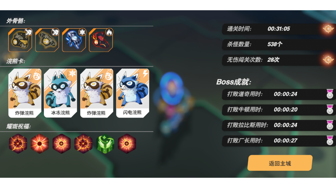 这一局挺离谱的,输出奇高运气奇好,全程碾压没掉血(护盾不算),本身还是1530血量大半管护盾的血牛,最后还有1w金币没花 体系是三连普攻攻速暴击,这是我玩的第二局,因为不是很熟悉关卡和boss,不然可以再快好多 核心的是+44%暴击率的外骨骼以及+30%暴击率60%爆伤的祝福,最后暴击率应该是满的,爆伤也高的离谱,同时还附带一堆暴击效果(太多了 攻速主要是三连击,连续5次暴击+150%攻速的词条,+45%攻速的高速星辉M, 伤害上加的最厉害的是每插一箭+10%和满血+80%,血量上主要有个X级的祝福和每4次攻击+2点护盾 上述经历由于过于看脸难以复刻,仅提供以普攻攻速暴击为主的体系的一种思路和演示 游戏目前的体验已经挺不错了,我个人比较期待联机模式,大厅里的功能太少,比较单调,希望后续能够丰富游戏内容