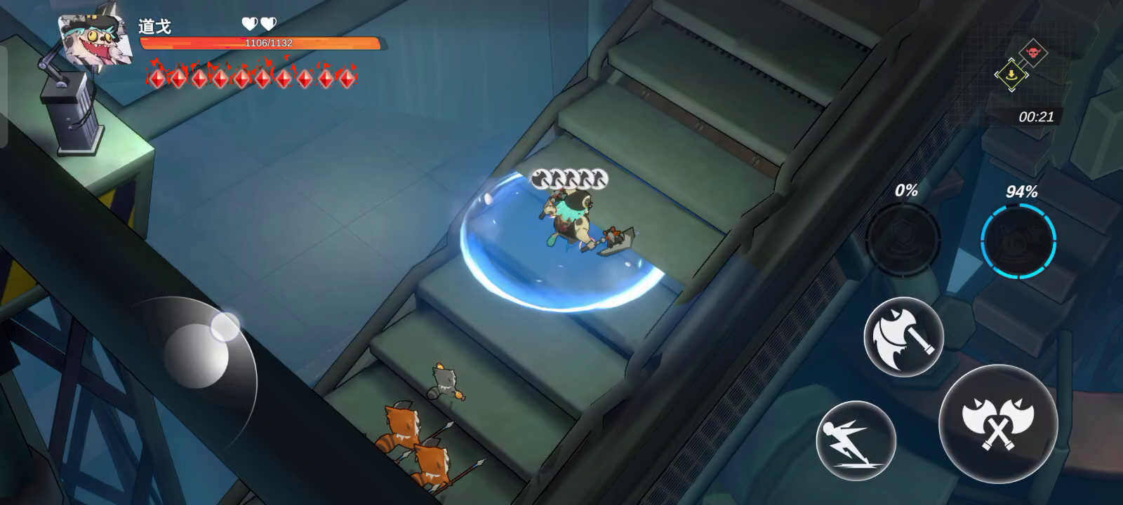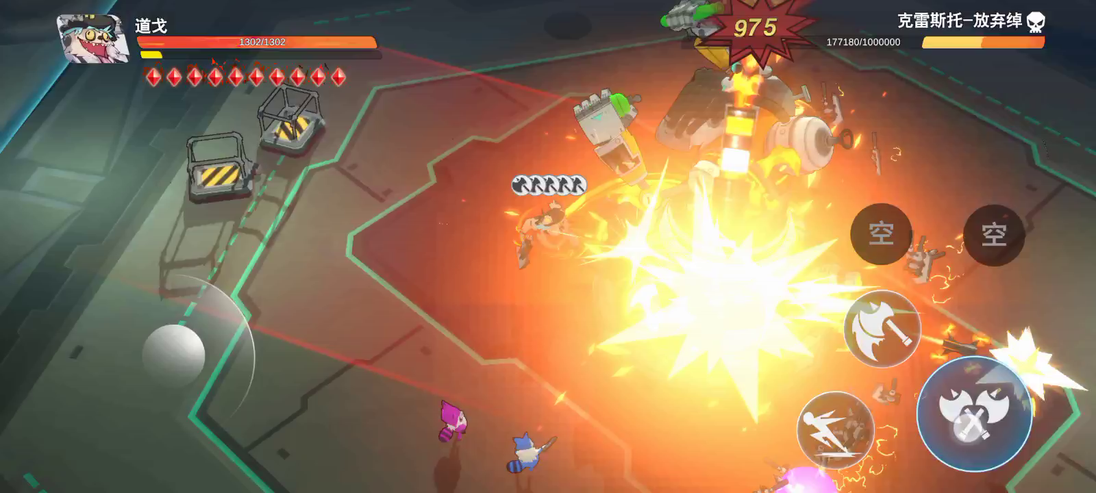 本来可以用转圈圈打死boss转一下出四个群技能cd短 然后也可以用斧头 飞出去就自动回来 选择和boss技能硬钢 看谁吸血速度快😂 大锤子boss就是站着硬钢打我的伤害不够我吸血的 这关打到一半想着发个视频然后录屏被打成残血上的