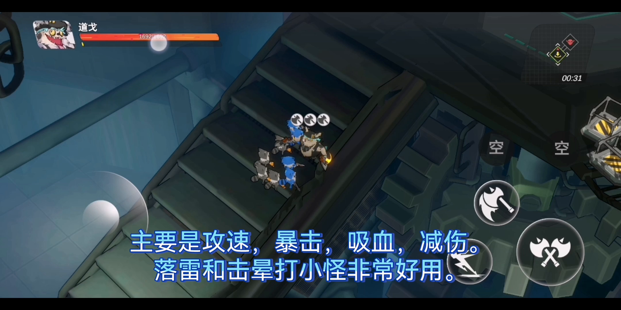 ⭕️上手不难,一看就懂 ⭕️玩法新颖,画面做工精细 玩了一下午,爱不释手。 期待解锁更多人物和更多素材。 希望论坛里大佬们出点装备技能搭配的帖子。 玩了一下午,终于通关最后boss了。 👍👍👍浣熊不高兴,感谢你们带给我其乐无穷的快乐。 期待正式服的内容。