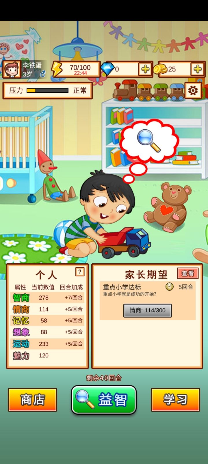 像中国式家长的游戏。但时不时会出现卡顿和加载不出来的情况。可玩性代拓展,希望能优化bug。😅