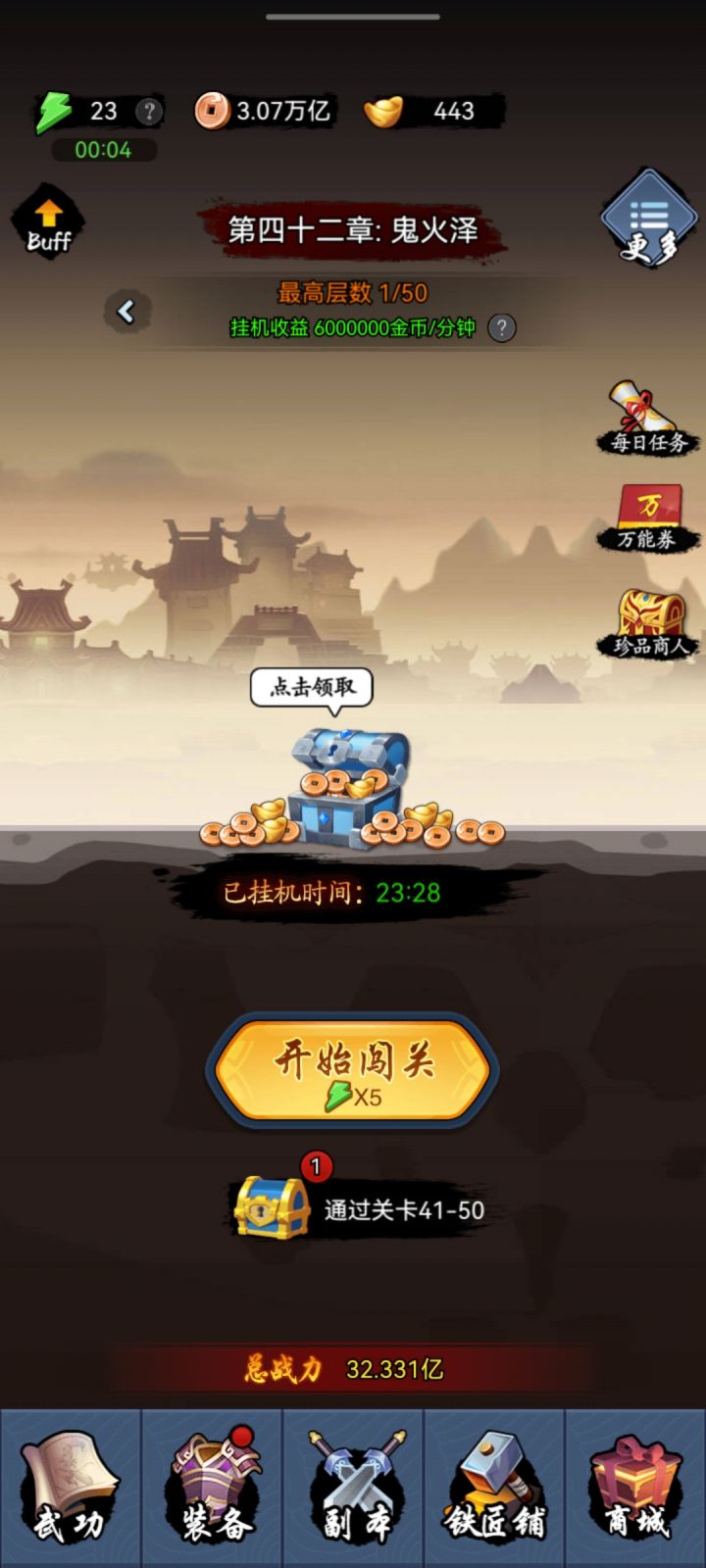 奇了怪了我是和你一样的打法,加了太极拳和打狗怎么连续两次翻车在42-40。。。你说的群里2500万砍过42?怎么个砍法。。。Õ_Õ