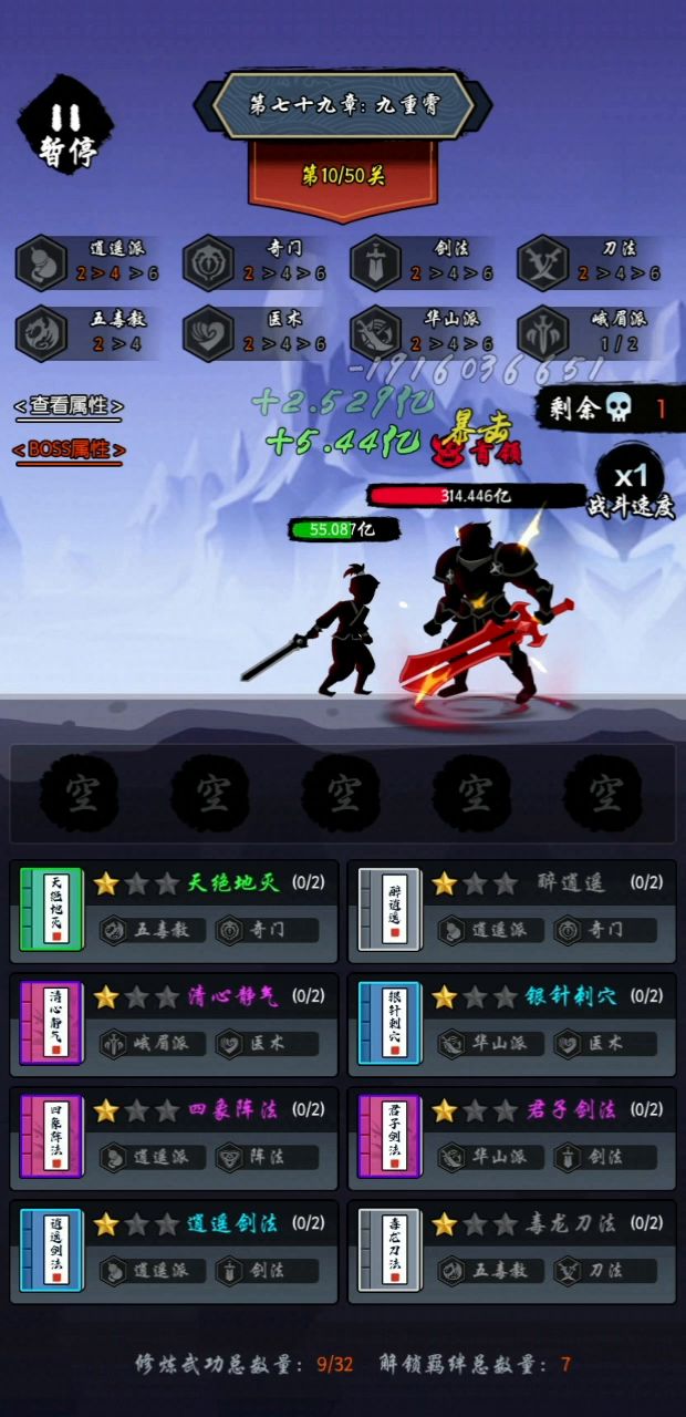 4刀属性不够,只能两医术拉血线,拼boss不暴击,商店里前10用的功法看见了多买买