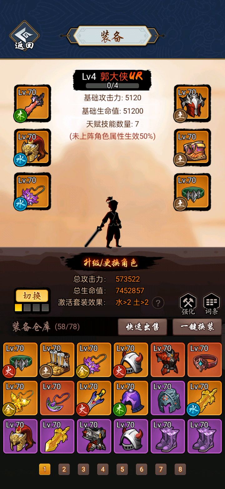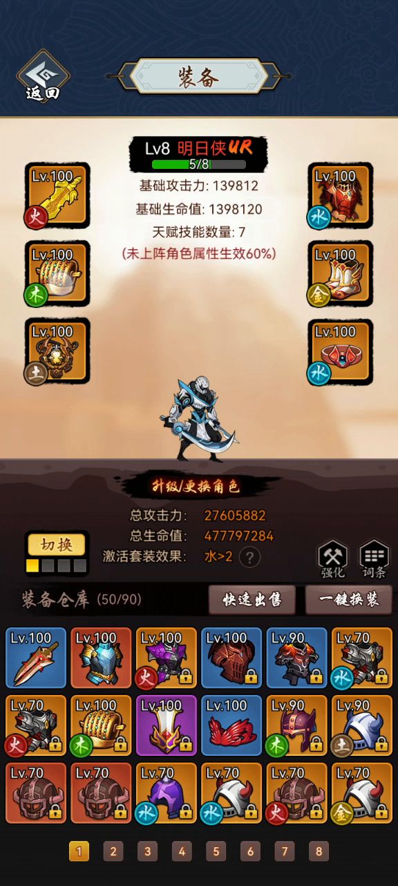 每件装备属性都不是顶级,一样通关,太极套太费万能卷了,这局运气不好用了万能卷。