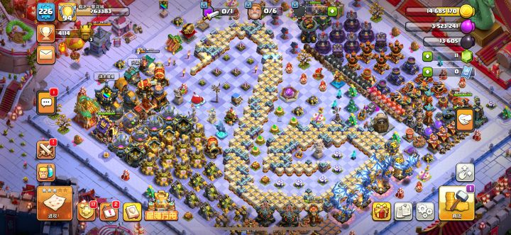 期间充过几次月卡,总充值不超过两百,场景和大本营皮肤都是白嫖的。16本之前都是在帮别人打工,连着打了14个月部落战,4个月前退出原来的部落,买了个小部落自己当首领。也不打部落战了,全都交给部落成员了,只有联赛才会帮忙。以前喜欢研究流派,现在玩游戏也没有劲头了,只玩飞艇雪怪,雷龙一字划,三星率还可以,联赛稳定21星。玩了这么久,有时候真感觉这游戏就是我