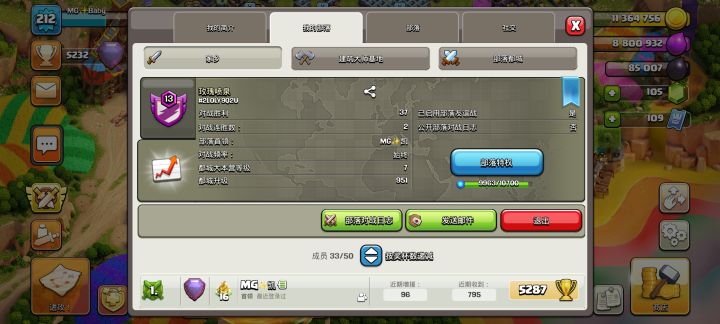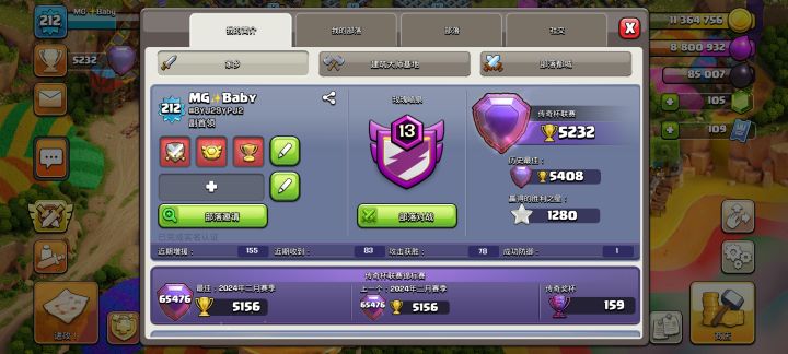 期间充过几次月卡,总充值不超过两百,场景和大本营皮肤都是白嫖的。16本之前都是在帮别人打工,连着打了14个月部落战,4个月前退出原来的部落,买了个小部落自己当首领。也不打部落战了,全都交给部落成员了,只有联赛才会帮忙。以前喜欢研究流派,现在玩游戏也没有劲头了,只玩飞艇雪怪,雷龙一字划,三星率还可以,联赛稳定21星。玩了这么久,有时候真感觉这游戏就是我