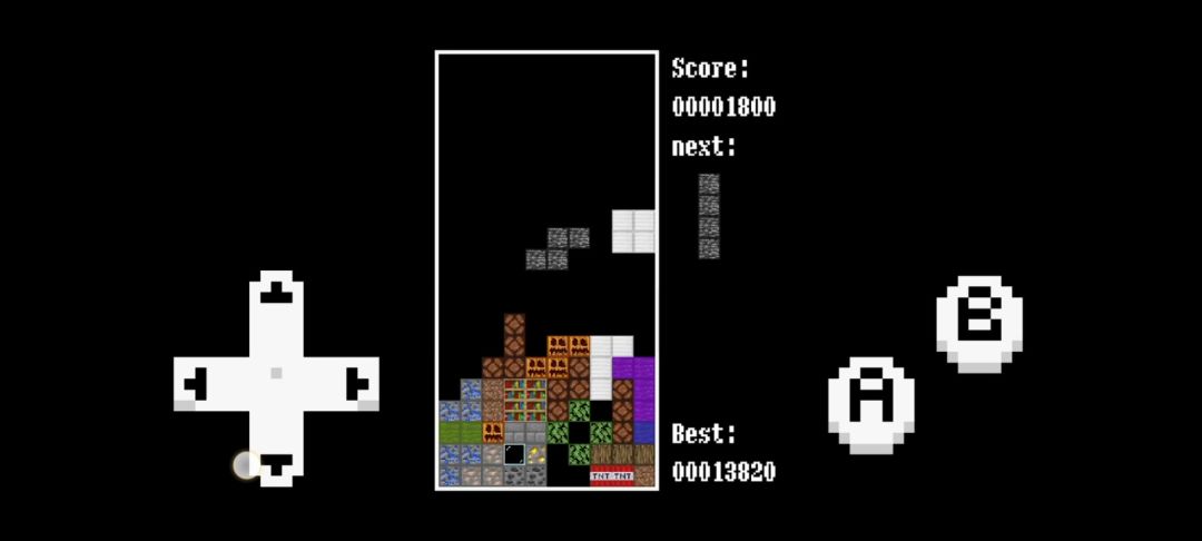 如果觉得没难度可以运用bug增加难度 我发现了这个:先开一把新的游戏快速点击A不要停然后慢慢的变成按下开始再继续游戏你会发现方块变成一堆一堆的来难度大幅度提升[表情_斜眼笑][表情_斜眼笑]