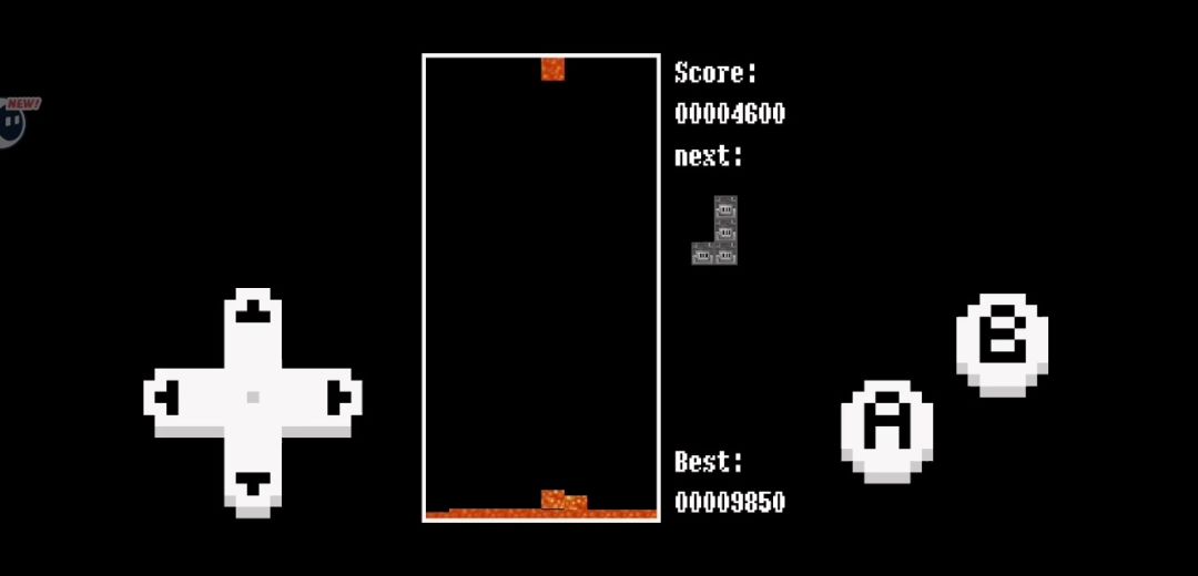 如果觉得没难度可以运用bug增加难度 我发现了这个:先开一把新的游戏快速点击A不要停然后慢慢的变成按下开始再继续游戏你会发现方块变成一堆一堆的来难度大幅度提升[表情_斜眼笑][表情_斜眼笑]