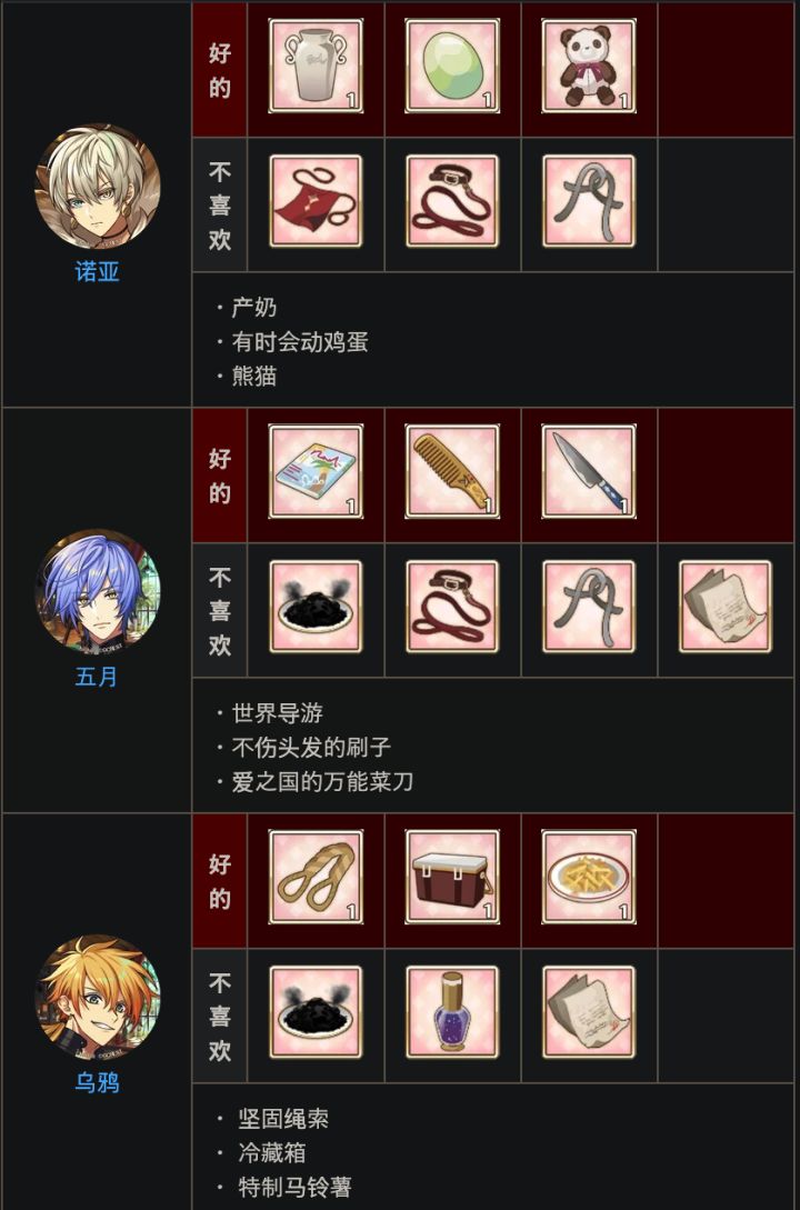 梦黑角色喜爱清单!礼物再也不用担心送错了