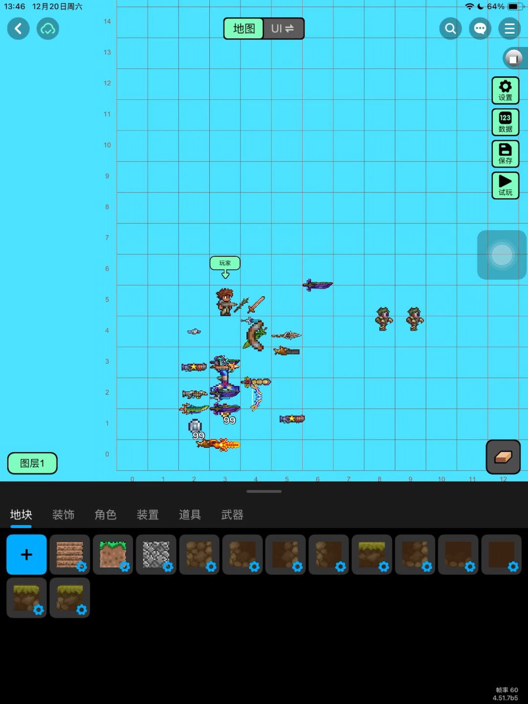 #创造世界 #我的世界2d版 这是我这是我冲着还原我的世界2d版做的游戏 现在目前已经还原了无限地图 就就是在创游里再搭建一套引擎 还还有柏林噪声随机进行生成算法 游戏ID是939480 大家可以来看看,支持一下