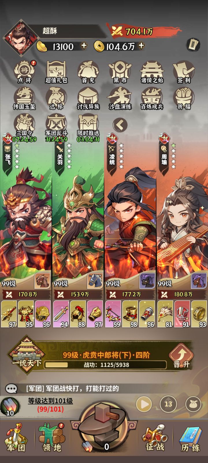 首先,这个游戏攻略在其他板块,因为没找到攻略开始弄得魏国,被打出屎,后来学榜一阵容,慢慢有点战力了,听说后面还有花费资源拿奖励的活动,没囤,很难受。不成型的建议:1.将第一次囤资源消费活动改为从开服开始的累计消费。2.游戏平衡性有点差,现在主流都是这几个武将。导致其他星就算比较高也无法赢,可能确实玩的少,理解弱,如有不当敬请谅解