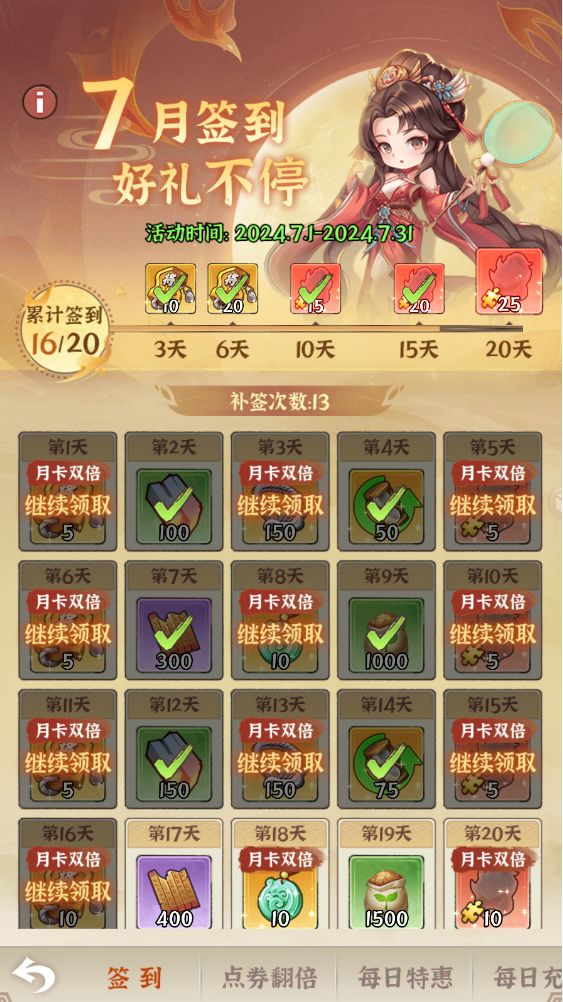 哈喽,各位主公们,洛洛今天又来给大家派福利了! 洛洛今天遇到一个比较郁闷的事。作为一个勤劳的打工人,洛洛今天竟然忘记打卡了!非常的懊恼,全勤没了,本来还可以犒劳自己,拿全勤吃顿大餐呢。。。。。所以,在你的生活中,是否有遇到和洛洛一样的事情,一直坚持却因为一个小遗忘,感觉损失一个亿。活动时间:即日起-2024年7月24日23:59:59参与方式:截图你游戏内签到≥7天的截图+你的角色I