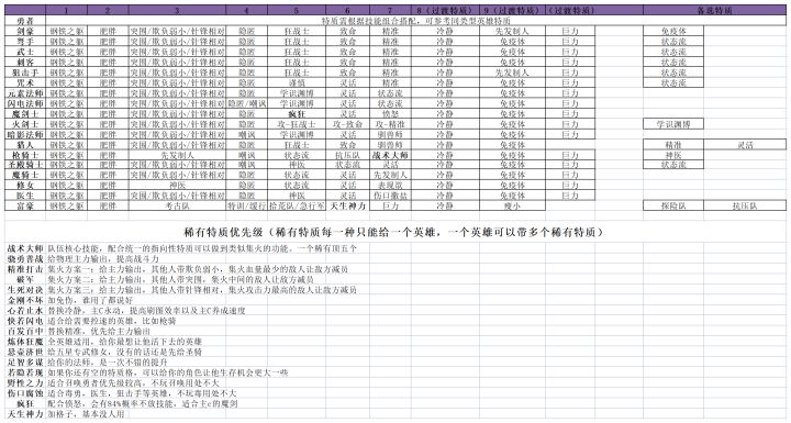 稀有特质图鉴及使用条件