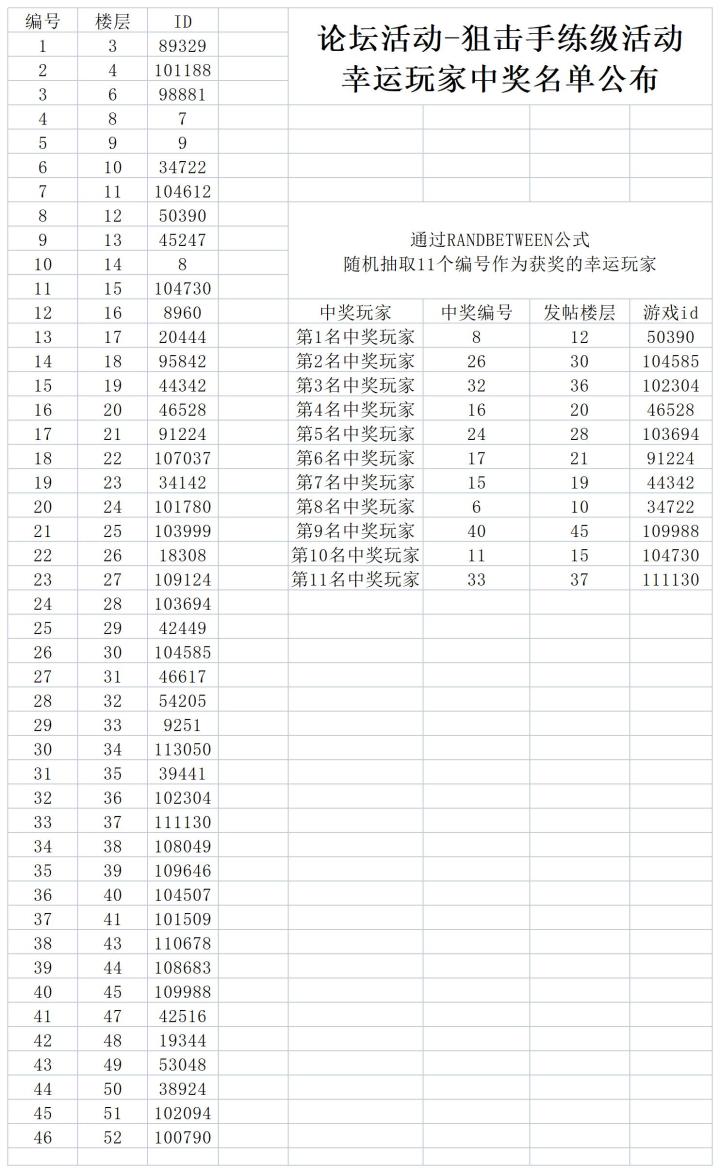 狙击手练级活动中奖名单公布