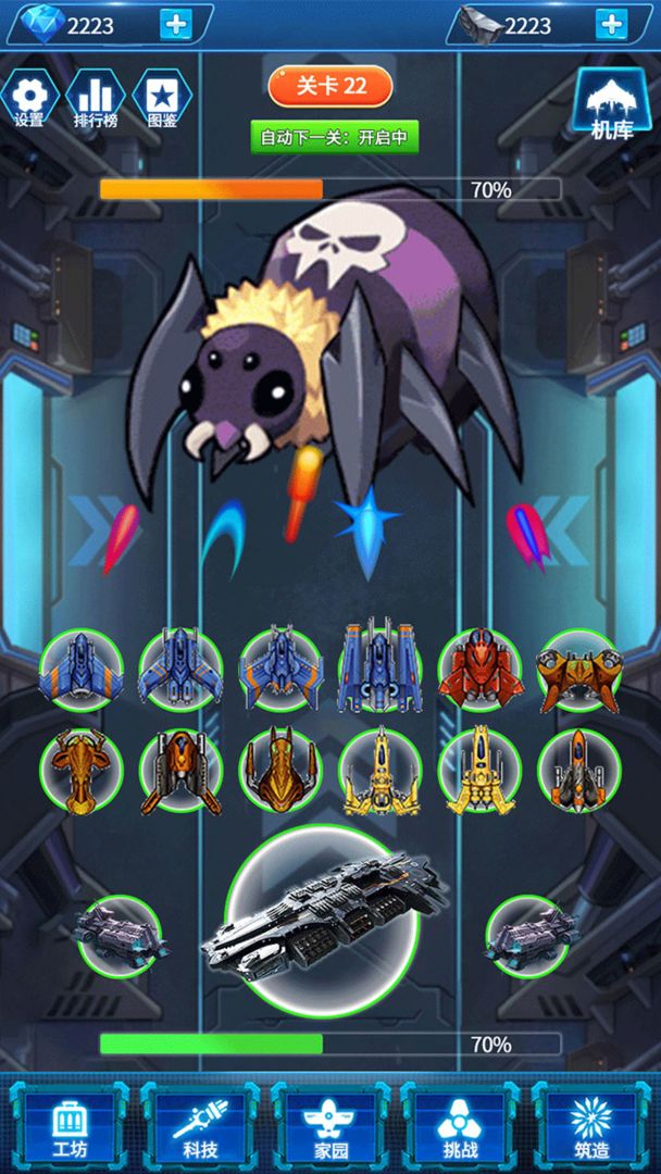 在《去太空当霸主》中,你将看到众多种类的战机出现在你的战队之中,你所需要做的则是将这些战机放置到正确的位置上,开启你的技能展开战斗。