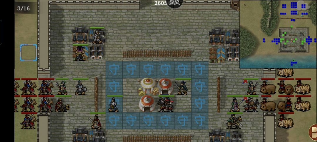 第二关影响着后期马皇后的加入(人物自带解除异常光环) 首先马皇后和朱元璋都不能死,虽然死了直接过关,但是后期马皇后不再加入 其次,必须杀的人数比马皇后多,后期马皇后才会加入 战前给朱元璋带上白泽走到这个位置~然后等敌人上来送就好啦 最后剩下一个到两个敌人的时候,朱元璋就去下面堵门等着杀新来的就好了~很轻松就可以过啦~ 本关没有彩蛋,只要专心保护好马皇后和抢人头就可以啦~