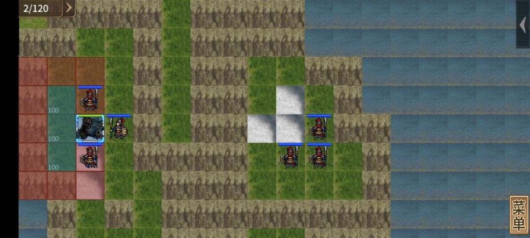 本关讲道理是个非常非常简单的关卡啊~ 开局左右门口的两个人往后退一格,这样子就只有两个敌人可以打的到你,上路下路的敌人全部消灭 然后坚守15回合就胜利了~ 稍微奶那么一两口就行 骑兵用不着 全部上法师~想要拿白虎的 如果是猴子 14回合往上冲开个隐身 15回合敌军出击离开兵营就可以拿到了~真的非常简单