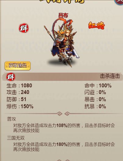 作为玩了几天的资深老玩家,如果要把经验全部说就太长了,我今天重点就挑新手最关心的组合来说吧: 1、最佳组合:吕布,貂蝉,华佗,张飞,左慈 2、培养方式:前期吕布极限流,后期吕布为主,其他四将平衡发展 3、培养顺序:可以参照组合的顺序,吕布第一毫无疑问,第二貂蝉,后面可以看心情调整 4、具体方式:进游戏先看广告把所有红将箱子拿下,不管是每月每周还是每天,通通拿下,全部打开选吕布,合成吕布再升星升到不