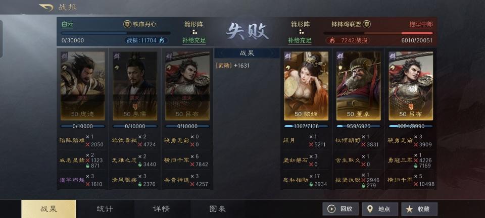 新晋的明星菜刀选手庞德和天下无双的吕布搭班子,按说威力应当是相当炸裂的,再加上毒王李儒,常规战的表现会相当稳才是。然而意外总是来得猝不及防,由吕布、貂蝉和董卓组成的义子骑编队,只需要稍稍做改动,就能具备轻松反杀他们的能力。 特别鸣谢游戏ID名为“白云”的哥们,虽然他分享的是自己的败报,不过能够把吕布、庞德和李儒都收到麾下,也足见这是个具备一定经济实力的老兄了。他的阵型为什么早在第三回合就被对方攻破