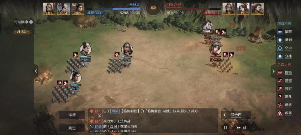 在《三国:谋定天下》的战斗中,我们会接触到非常多的增益和减益状态,有效利用好增益状态能为我们队伍的生存和输出创造有利条件~ 今天让我们跟随@三谋攻略君的介绍,一起来看增益状态在实战中的具体应用吧! 一、常规增益状态 规避 说明:受到伤害时有概率使该次伤害无效。 代表武将&战法:赵云【七进七出】、战法【风卷残云】 实际应用: 通过诸葛亮的狂风大作为敌我施加风暴状态,进而触发风卷残云的伤害与规避