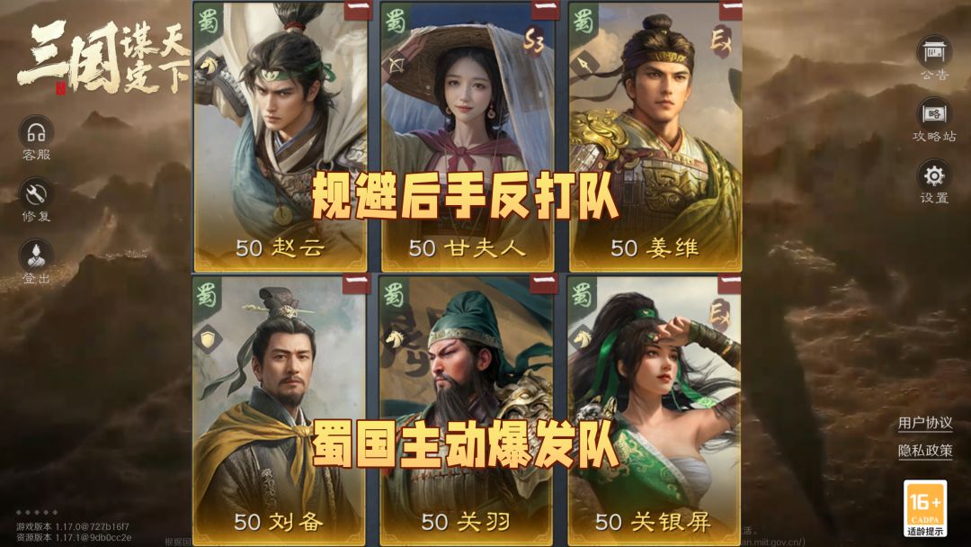 新手开荒打架阵容推荐解析,规避后手反打队、蜀国主动爆发队