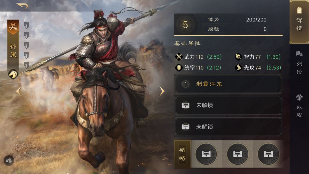 孙策介绍及配将攻略【吴国橙将】【三国:谋定天下】