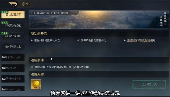 大家好,本期奉孝,今天给大家带来的是“活动系统”的介绍。 在刚进入游戏时开区活动非常丰富,分别是:“初露锋芒”、“虎视中原”、“签到有礼”、“拓土开疆”、“社群有礼”,以下为大家介绍活动系统详细玩法。 一、活动:初露锋芒 时间:每日解锁 奖励:完成每日任务,可获取“青玉印”、“求贤令”、“铜币“,其中”青玉印“数量越多,可获取的“求贤令”越多,并且每日最后一列获取均为不同。 二、活动:虎视中原