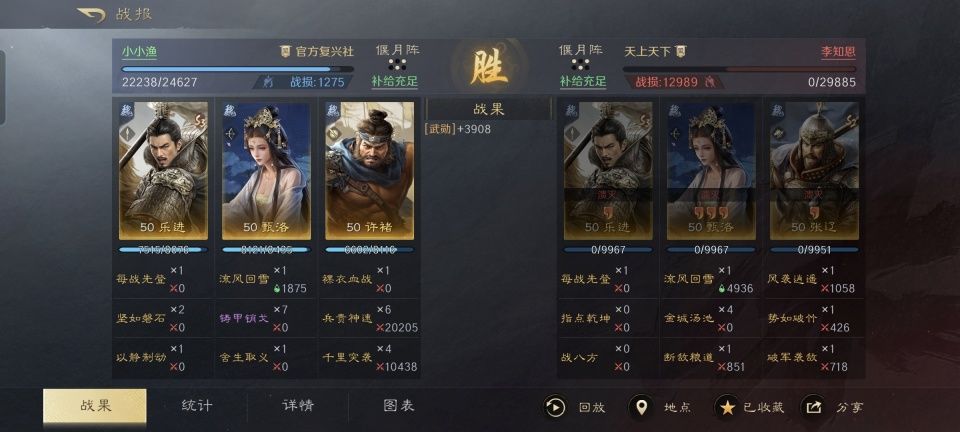 曹操身边的贴身保镖许褚,按说其武艺也算得上是三国时期的顶流选手之一。然而三国谋定天下的游戏策划团队,却并没有给他太多的登场机会,都已经S3赛季了,存在感依旧不是太强,跟他的前辈典韦相比,就更是自惭形秽了。 特别鸣谢给本文提供创作素材的玩家朋友,他在游戏里的ID名为“小小渔”。利用许褚、乐进和甄洛大摆偃月阵,竟然半场的时间内就把对面的乐进、张辽和甄洛给搞定了。先登虎痴是如何武装自身爪牙的,一切且看下