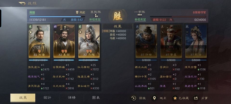 时间过得真快,三国谋定天下的S2赛季已经进入到了冲刺8级地块的阶段。尽管陆逊、法正、贾诩这些新增武将的人气一度很旺,然而刘备、袁绍、马超这几个老将也还是称得上一声“风韵犹存”。无论是开荒,还是接下来可以预见的PVP,刘袁马的光环大概率是不会消退的。 这个游戏ID名为“周围”的玩家朋友,是本期文章的主角,他跟我目前还是同一个盟里的。我也是正好看到了他在同盟频道里的分享,才注意到了这一篇战报。此战摆出