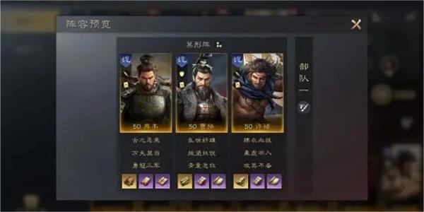 三国谋定天下典韦曹操许褚阵容如何搭配?典韦曹操许褚阵容主要是利用高频的攻击来打出伤害,也可以靠一定的反伤来进行输出,典韦主要作为游戏的主力,下面就让小编给大家带来三国谋定天下典韦曹操许褚阵容攻略,感兴趣的小伙伴们快来看看吧。 三国谋定天下典韦曹操许褚阵容玩法攻略 一、战法选择 典韦:【临危勇烈】 【锐不可当】 曹操:【蓄势待发】 【避其锐气】 许褚:【兵贵神速】 【铁骑横冲】 二、玩法思路