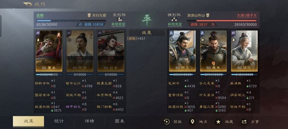 在S1赛季,尽管神医华佗在三国谋定天下的出场率不高,起码玩家们印象里都记得他是玩弓箭的。S2赛季新增的高级兵种系统,让华佗有机会可以转成盾兵了,可真正实践的玩家又不是很多。所以这一期要讲解的关于华佗转盾的战报,应该算是挺稀罕的。 让我们在此特别鸣谢游戏ID名为“久周丨穆子义”的玩家朋友,他用自己麾下的华佗、邓艾和典韦摆出了锥形阵,其中典韦在前,邓艾和华佗被安排在了后方。面对着话本版董卓在前,陈宫和