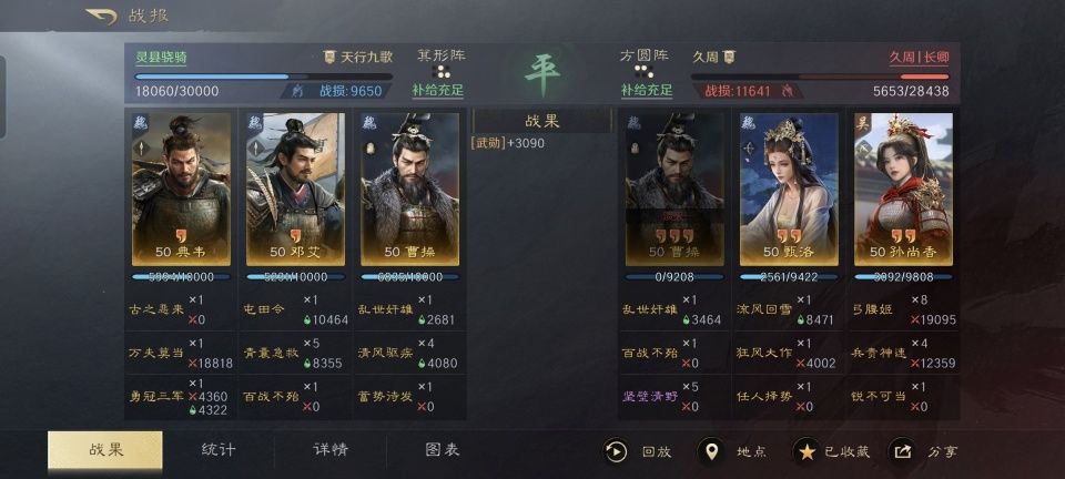 天水枪的效果,相信各位三国谋定天下的玩家朋友们都心中有数,赵云、姜维和甘夫人的丝滑三角就是最完美的存在。不过很少有人会想到,要是用甄洛把甘夫人换下,会是怎样的画风。 特别鸣谢游戏ID名为“毛毛虫”的玩家朋友,给本文提供了宝贵的创作素材。他利用麾下的赵云、甄洛和姜维摆出鱼鳞阵,都是只用了半场的时间就把典韦、曹操、甄洛的组合跟吕布、曹纯、乐进组合的给击垮了。当中暗藏了哪些值得借鉴的思路,且看我下文分解