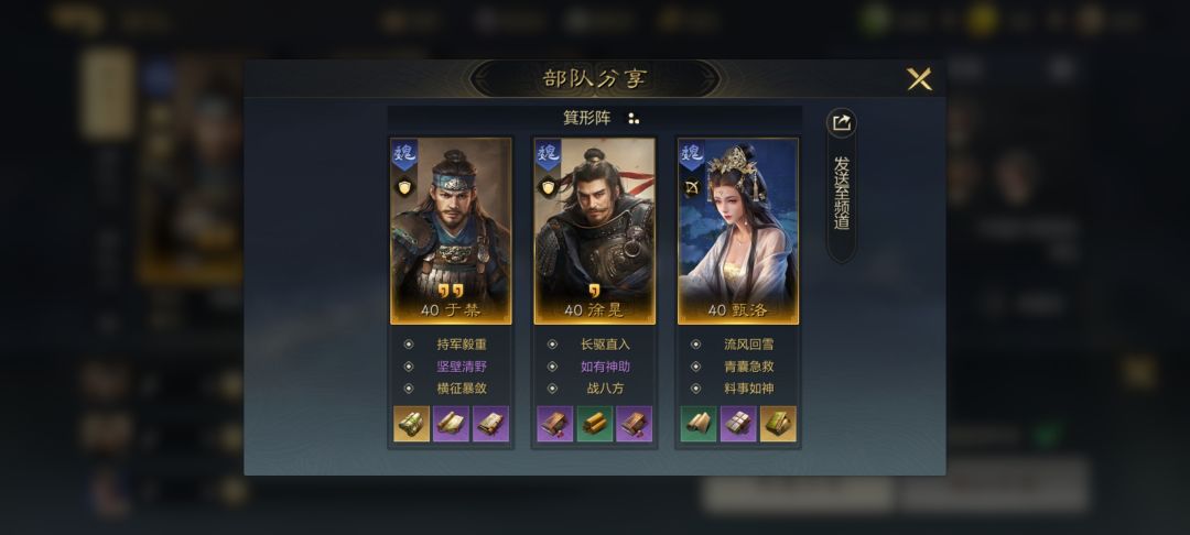 大家好呀,我是叶翊天,我又来了。这次为大家带来的是,我从开服起就一直想研发的一套阵容——甄洛核爆。为什么直到今天才写攻略呢,因为直到今天我才从大卡池捞到了横征暴敛。想必聪明的看官朋友们已经知道了,这套阵容是一个非常经典的战法牧架构。废话不多说,直接贴阵容。 这套阵容目前的形式未必是最佳,因为我个人认为张郃的技能比徐晃要更加优秀。但是笔者本人没有捞到张郃进行测试,所以先组成这样的队伍发上来了。同时