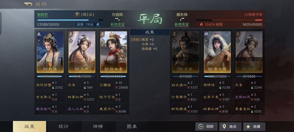 东吴郡主孙尚香,在如今的诸多三国题材SLG游戏里从来都是武力前几名的巾帼英雄,三国谋定天下自然也不例外。本期的主角,是一个游戏名为郁皓君的兄弟,在搭配方面也是称得上标新立异,竟然让曹魏的美人甄洛跟她搭起了班子。 或许因为他自己在三国谋定天下里是青囊职业的关系,故而对于治疗系的角色都比较偏爱,并且有着比较深入的研究,才会这样配着玩吧。从他分享的战报来看,甄洛、小乔和孙尚香的组队确实也获得了不错的成绩
