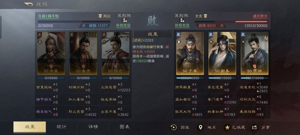 五子良将之一的于禁,此生最不愿意提及的人,想必就是在樊城把他给淹傻了的关羽。也正是因为这个历史事件,导致了于禁在如今的诸多三国题材SLG游戏里,面对关羽都会不自觉的患上“恐关症”而败多胜少,这在三国谋定天下之中貌似也是如此。 然而本文献上的战报颇为倒反天罡,于禁不仅打赢了关羽,而且胜得干净利落。特别鸣谢游戏ID名为“薯条王”的朋友,给本文提供了宝贵的创作素材。他利用于禁、贾诩和周瑜摆出箕形阵,三个