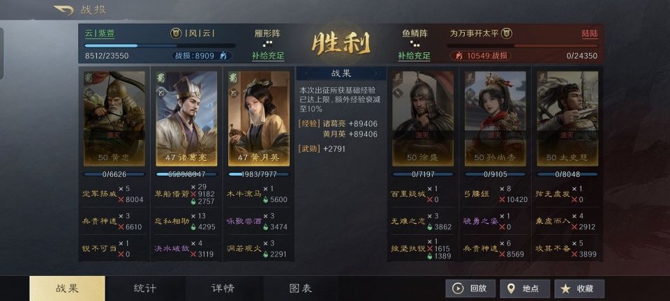 别看黄忠老将军是蜀汉五虎上将里面年纪最大的,可他在三国谋定天下的游戏次元里,却堪称输出和发挥最为强势且稳定的。要是升到满红的黄忠,其威力就更是令人谈之色变了。 然而本期要讲解的战报则颇为特别,满红的黄忠竟然全场只贡献出了4708点伤害量,这对于忠义弓来说实在是太跌份了。而造成这一切的,是徐盛、鲁肃和陆逊组成的都督缴械队,在此特别鸣谢游戏ID名为“久周丨无根生”的玩家朋友,让我们见识到了如此成功的缴