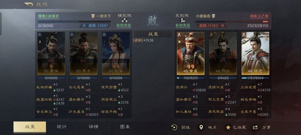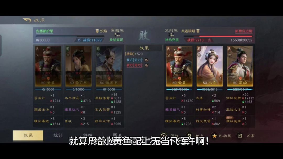 周瑜打黄盖,一个愿打一个愿挨。这句谚语,在国内可是但凡受过九年义务教育的人都听过的。在三国志谋定天下的S1赛季,周瑜和黄盖之间也不乏如胶似漆的配合,甚至把诸葛亮加入进来,还生成了广受好评的大黄猪。随着S2赛季新武将的登场,新晋火神陆逊和黄盖的琴瑟和鸣就更是奇招频出了。 在此特别鸣谢游戏ID名为“侠影乄乙骨”的玩家朋友,他所分享的战报,就是一场标准的陆黄配,此外还加入了孙十万。面对着蜀汉原装忠义骑,
