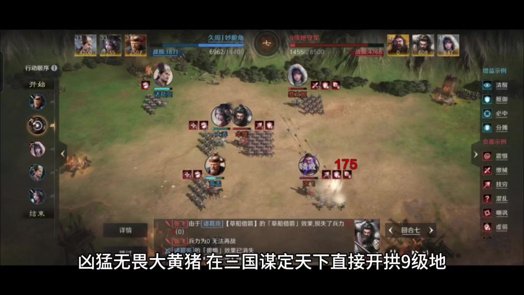关羽水淹七军,生擒于禁并俘杀庞德的战绩,令其一时之间威震华夏,三国迷们对于此战想必都有极其深刻的印象。此战堪称关羽军事生涯的巅峰,却也成为了他的绝唱。在三国谋定天下的游戏次元里,把关羽、庞德和于禁三人聚拢在一起,他们同样可以打出不俗的战绩。 此番自己折腾的,就不做特别鸣谢了。关、庞、于三人摆出偃月阵,三回合就打崩了对面的大黄猪。正所谓不是冤家不聚头,他们的制胜思路,在我看来还是有一定分享借鉴价值的