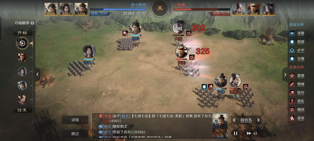 S3赛季新增的偃月阵,其最显著的特征,莫过于是强化了左右两路角色的攻击伤害。故而脑洞大且胆也肥的玩家们,自然就会把全部的好钢都用在刀刃上。 本文带来的战报,是自己瞎搞着玩的,不做特别鸣谢了。本以为常山赵子龙和虎痴许褚搭班子会很菜,却不想打赢了对面的大黄猪,战损比达到1比2,还算可圈可点吧。接下来,就把细节进行复盘整理,希望对各位有用。 赵云战法:七进七出+坚如磐石+勇冠三军。 韬略库:兵情善本+神